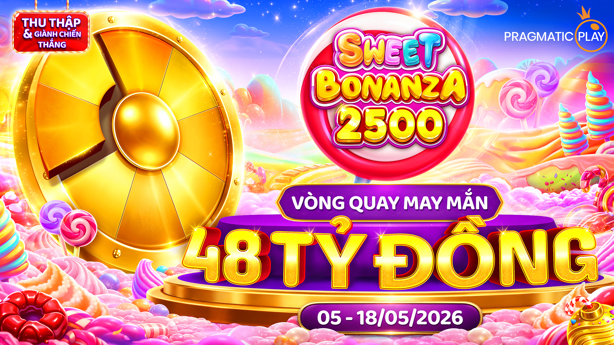 • Vòng Quay Miễn Phí sẽ được trao trong game Sweet Bonanza 2500, với cùng mức tiền cược đã thắng giải. Nếu tiền cược vượt quá 26,000 VNĐ, mỗi Vòng Quay Miễn Phí sẽ được trao ở mức tiền cược 26,000 VNĐ.